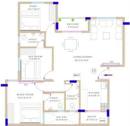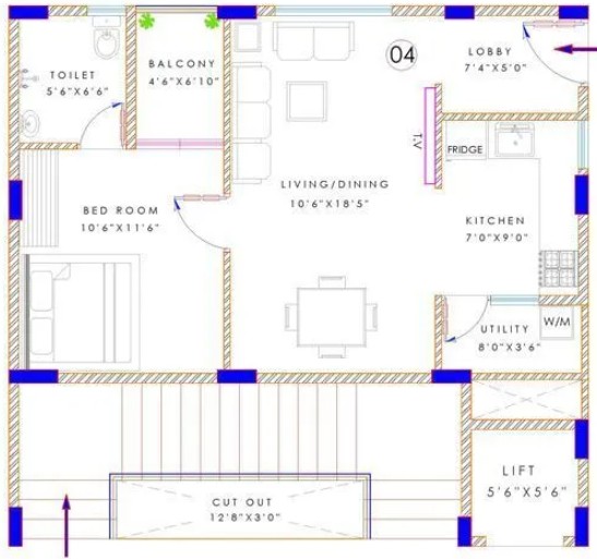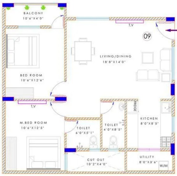 Provision for water purifier, Exhaust Fan, Refrigerator, & Microwave