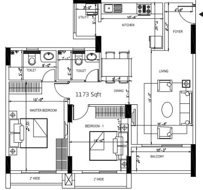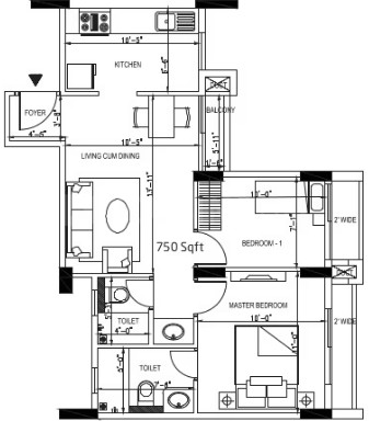 2 BHK : 4 KW KPTCL supply & 0.75 KW DG back up