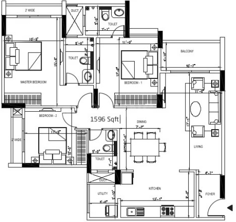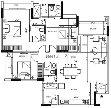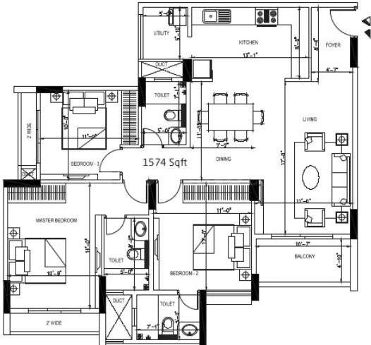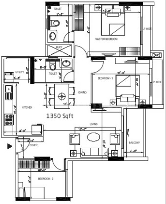 3 BHK : 5 KW KPTCL supply & 1 KW DG back up