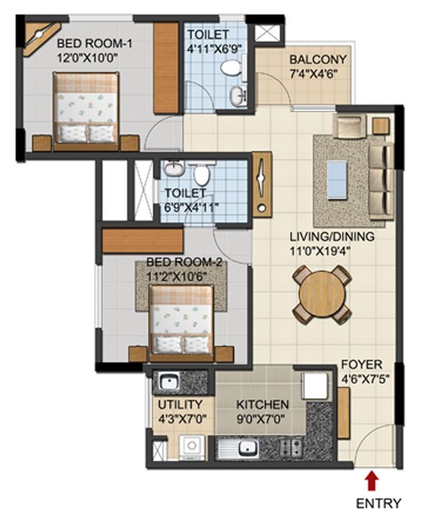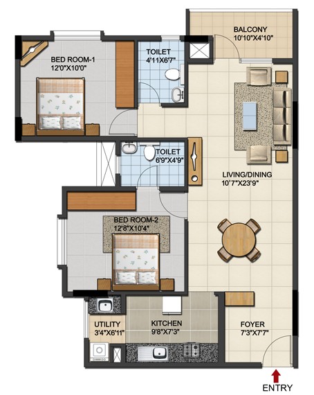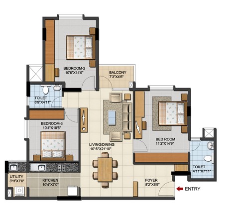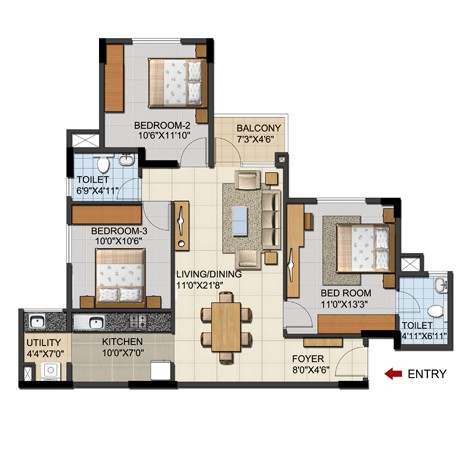 Main Door: Hard wood door frame with designer flush doors(polished finish on both sides)