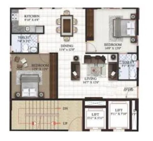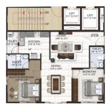 Living/Dining/Family/Foyer: Vitrified Tiles