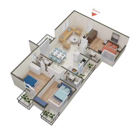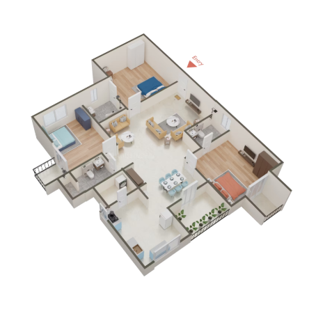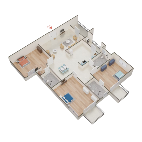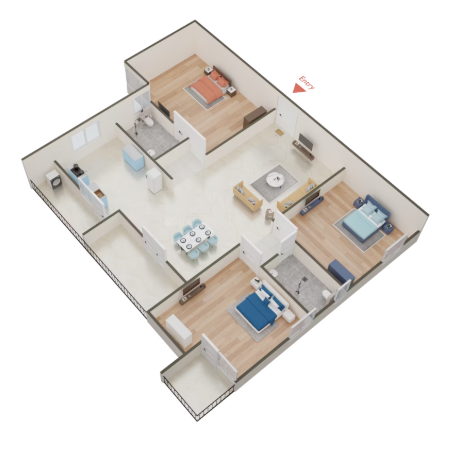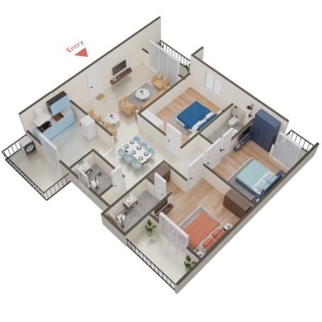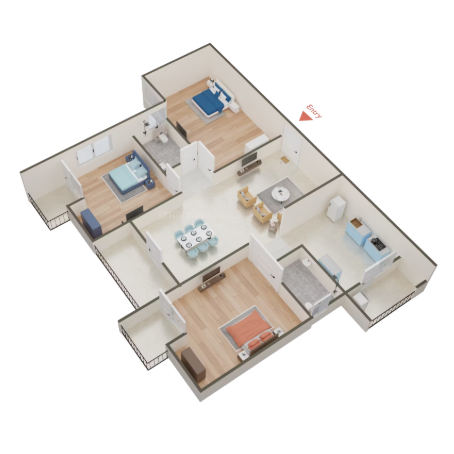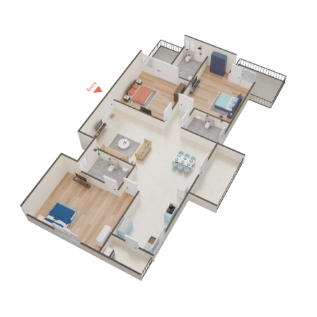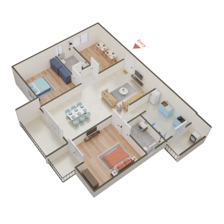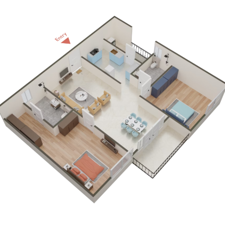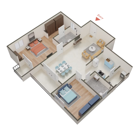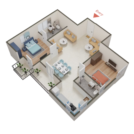 Main door: Teak wood frame & Shutter aesthetically designed with melamine polishing and designer Hardware of Reputed make