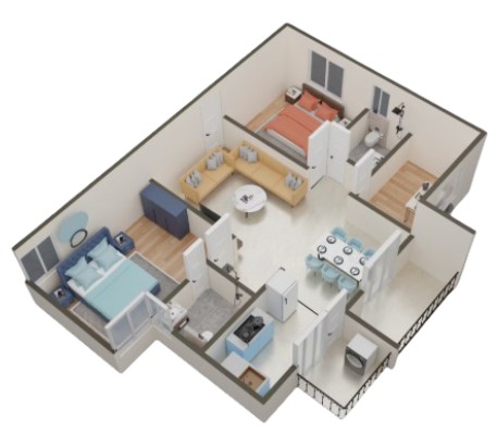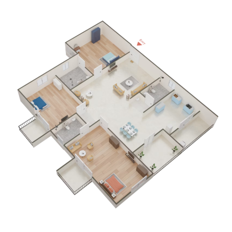 Bedrooms, Drawing, Living, Dining & Kitchen: Vitrified tiles of size (2X2) for the entire flat