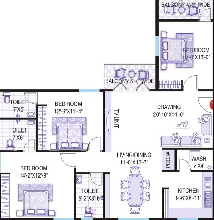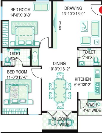 Concealed copper wiring with Havell's modular switches and necessary points in each rooms and 15amps power plug points in Hall, kitchen, attached Toilet only