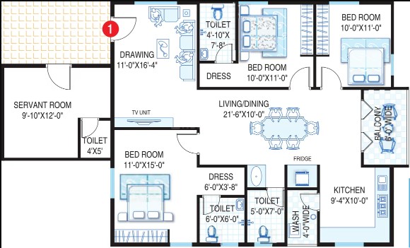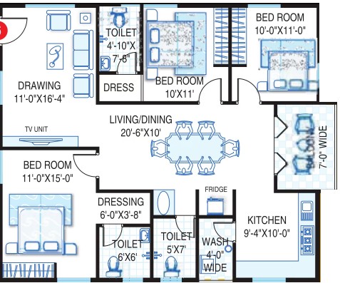 7 feet height glazed tile and ceramic flooring common toilet with E.W.C with flush tank and attached toilets with wall mounted W.C of Hindware or equivalent and provision for geyser other necessary C.P. fitting of ESS-ESS and Parryware for toilets single lever mixer in all bath rooms