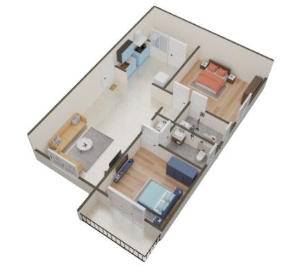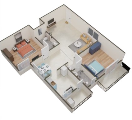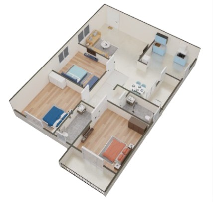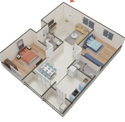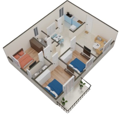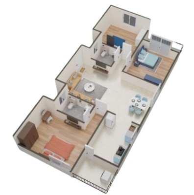 Vitrified tiles in Living room, Diningroom, Bedroom and Kitchen. Ceramic anti skid tiles in toilets.