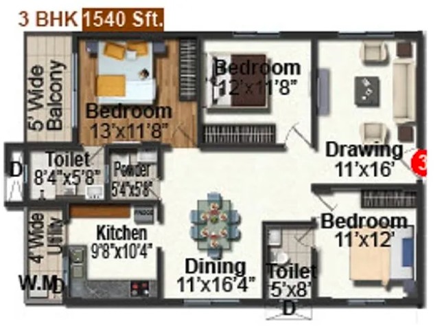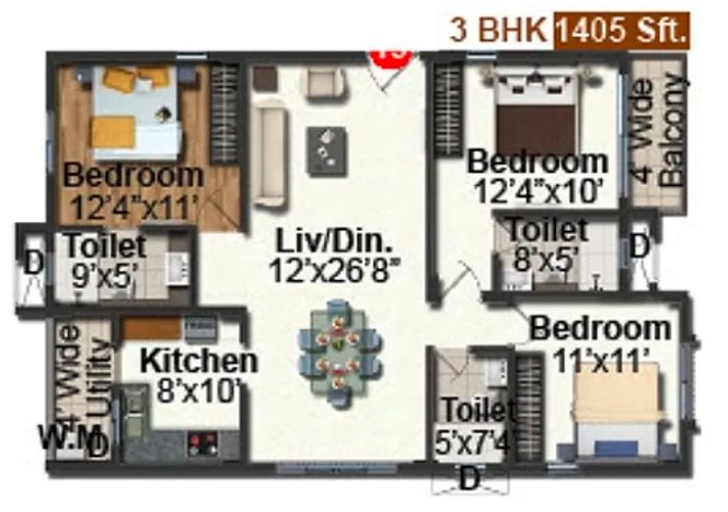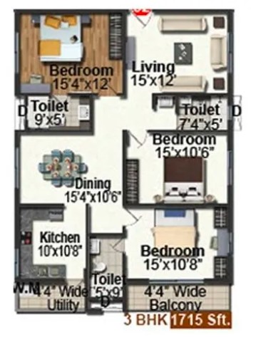 Provision for water-purifier, exhaust fan and washing machine point in kitchen utility