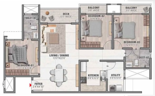 Glass partitions in all toilets with high quality chrome plated fittings of reputed brands.