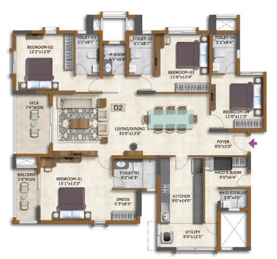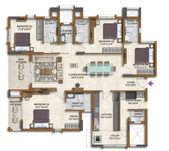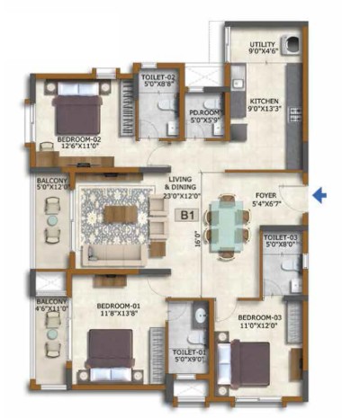 Electrical points: Adequate electrical points required for living, dining, bedroom, kitchen, bath rooms are provided. Modular switches and fittings are provided.