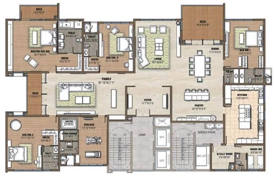 Passenger and service lifts in all blocks of suitable size and capacity
