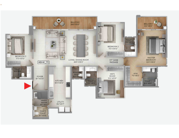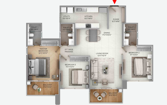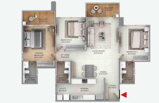 Unit sizes of the Purva Silversky ranges from 1864 - 2824 Sq.Ft .