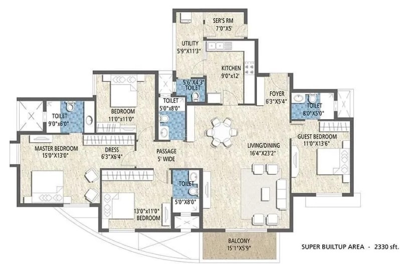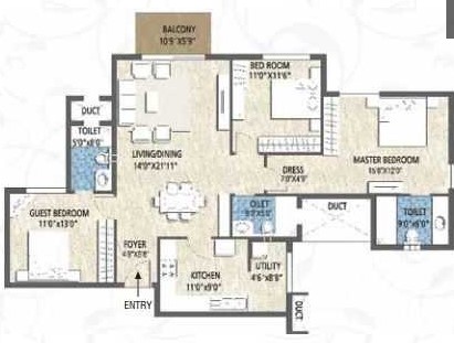 • One AC point is provided in master bedroom and guest bedroom and provision of dummy AC point in other bedrooms