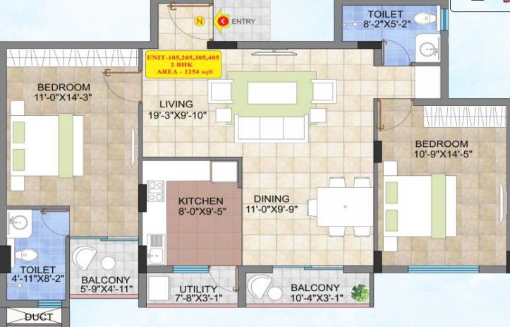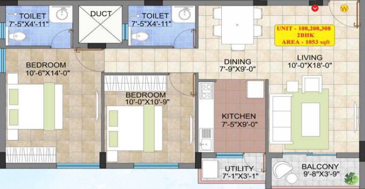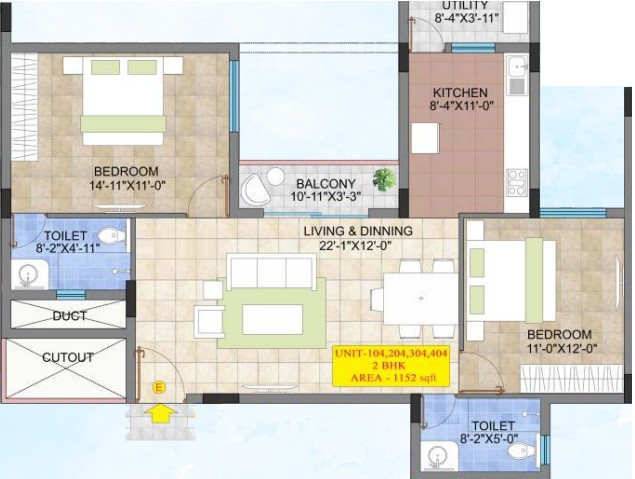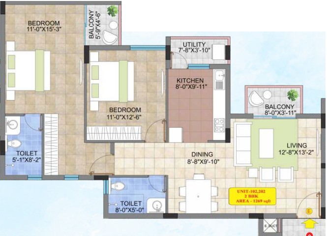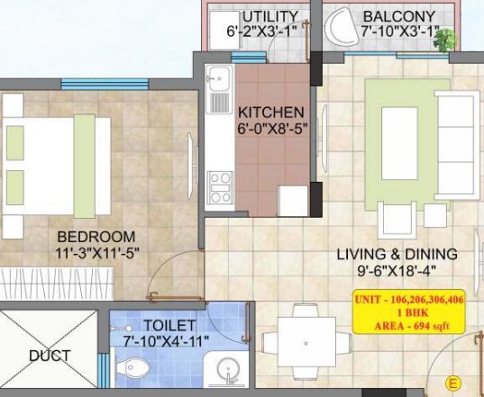 2'x 2' Vitrified tiles flooring in entire flat with skirting, except bathroom & balcony/Utility flooring