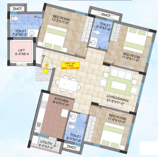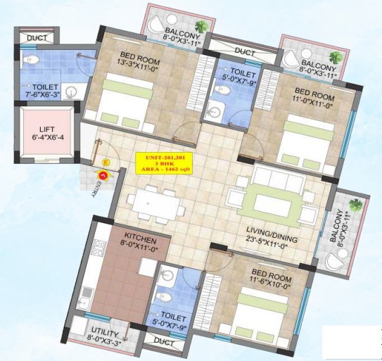 Raw power of 3 KW for 2BR & 1BR flats, 5 KW for 3BR flats will be provided