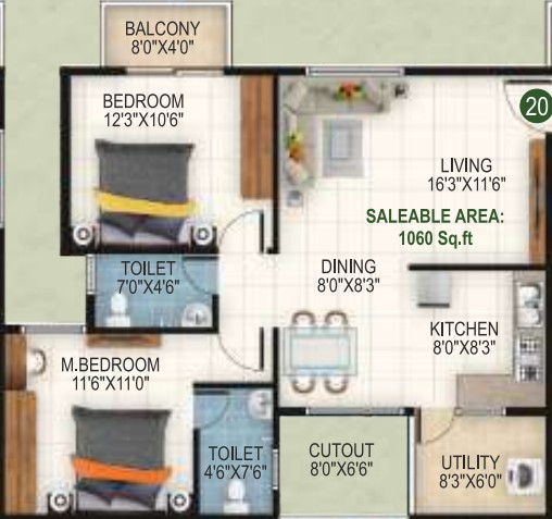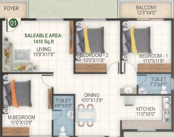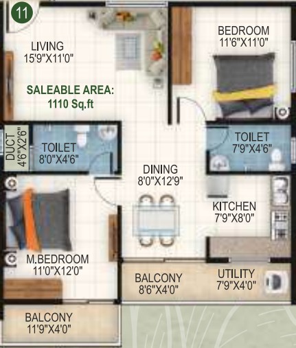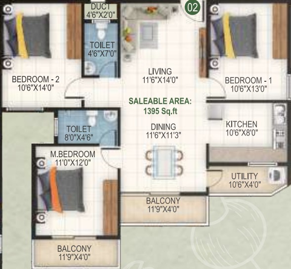 Flooring: Vitrified tiles for entire flooring & anti-skid flooring in balconies. Granite flooring for common areas.