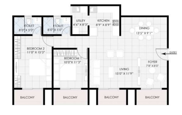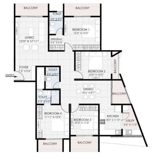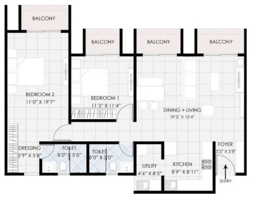 Points: Adequate points for light, fans, and other plugs in bedroom, toilets and kitchen with modular switches of reputed brand
