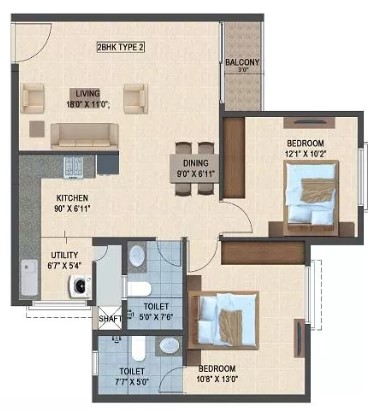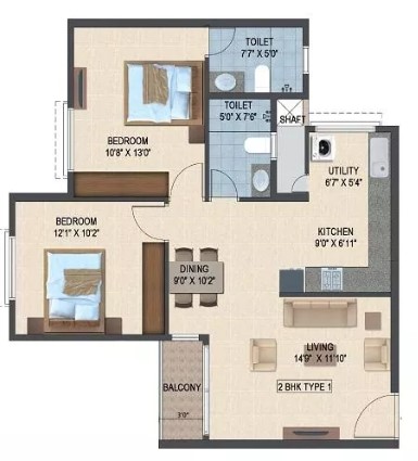 1 KVA for 2 bedroom & 3 bedroom (At extra cost)