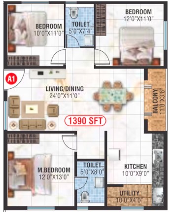 Standby power of 1KW for apartments and 100% power backup for common area facilities