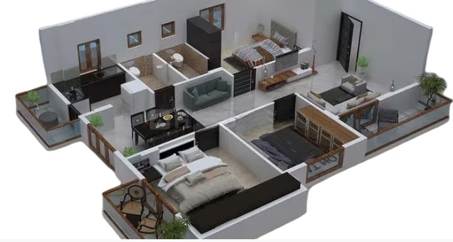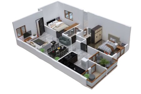 Drawing Room / Hall & Dining : 2*2 vitrified tiles