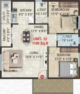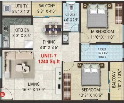 Granite and Ceramic flooring for common areas like staircase, lobbies, etc., with Iron Railings.