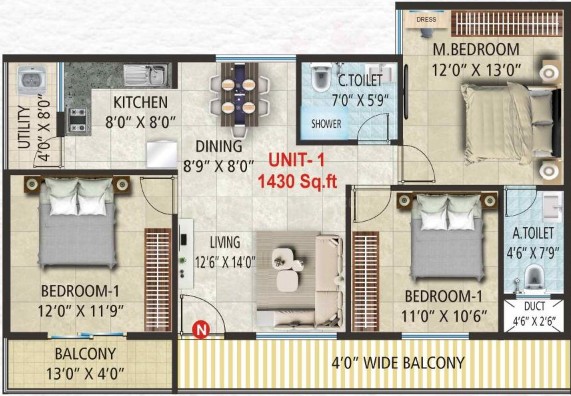 Concealed copper wiring with adequate light points with 'EV and Telephone points in living and Master bed Room of 1S1 or equivalent like GM, Finolex wiring, etc., of Basic Model.