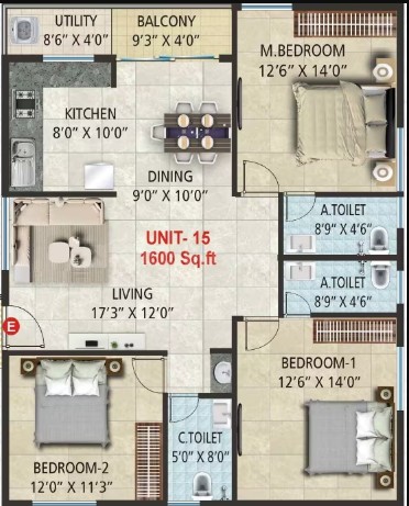Anti-skid ceramic tile flooring and glazed hle dado upto till roof height And quality CP fittings of ESS and Hindware sanitary fittings.