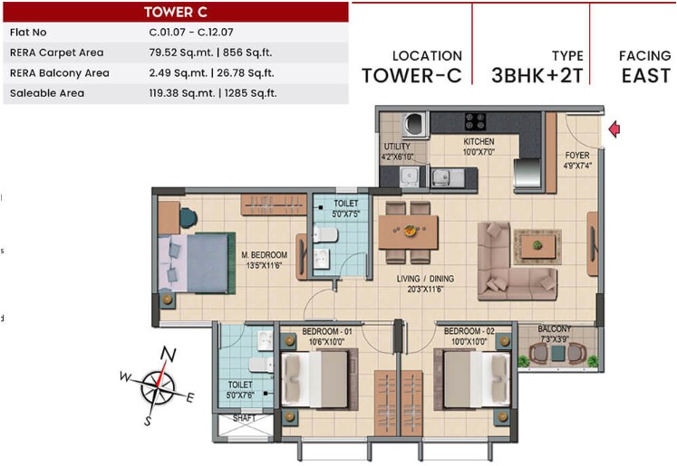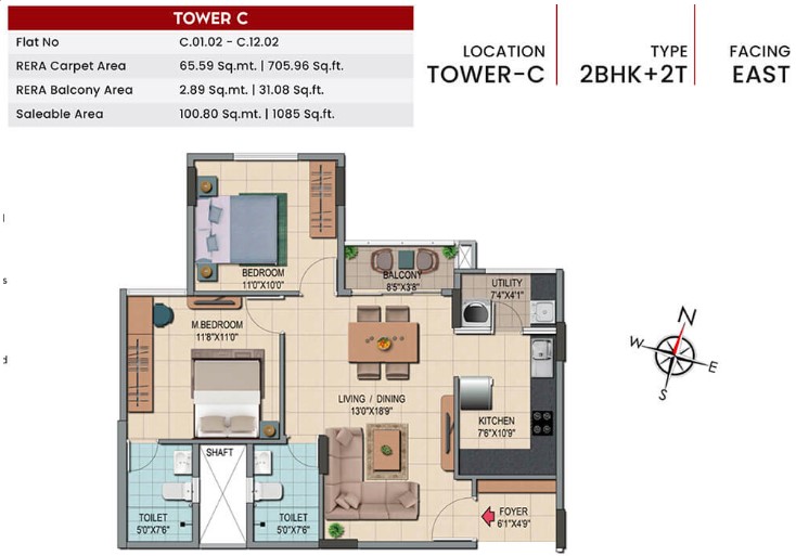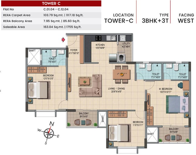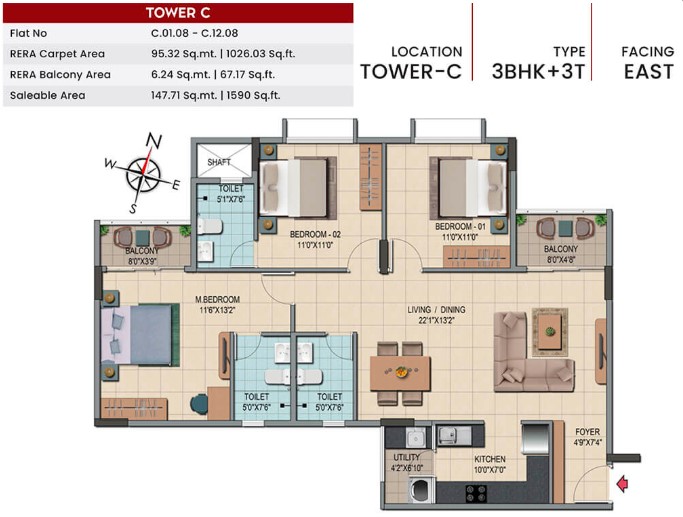 Unit sizes of the Shriram Codename Smash Hit ranges from 1085 - 1755 Sq.Ft .