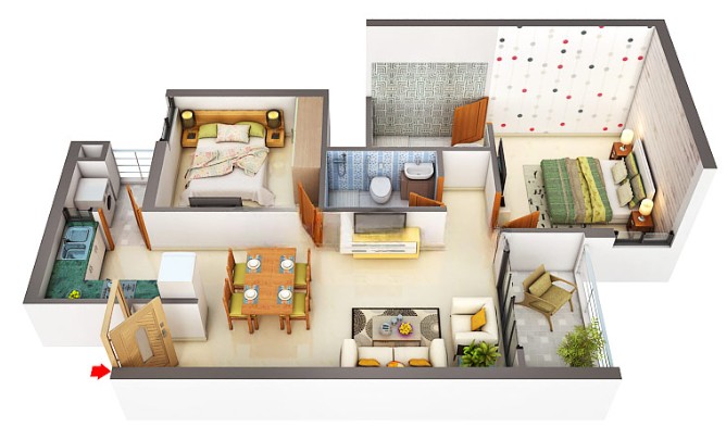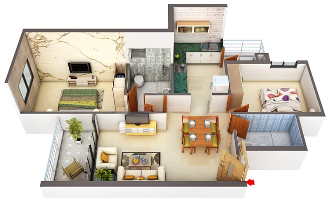 Main Door Frame: Teakwood frame with paneled door shutter (with SS/ Brass Hardware)