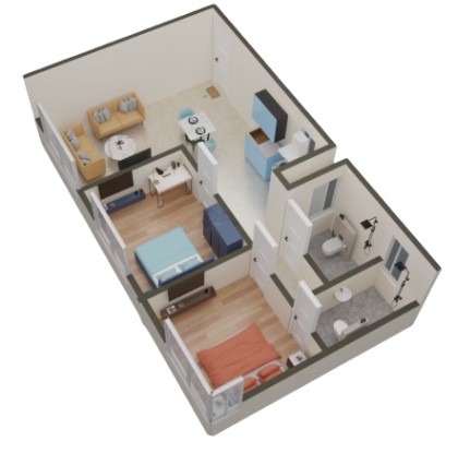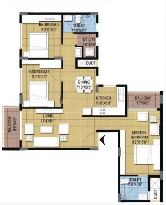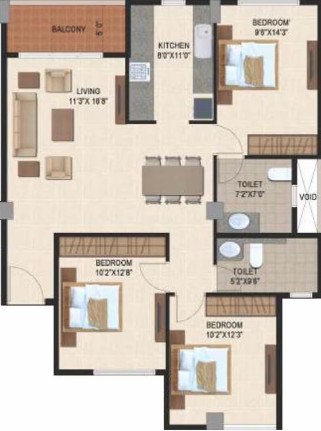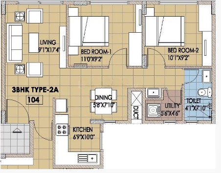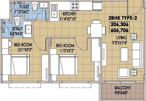 Foyer, bedroom, kitchen, living & dining: Vitrified tiles