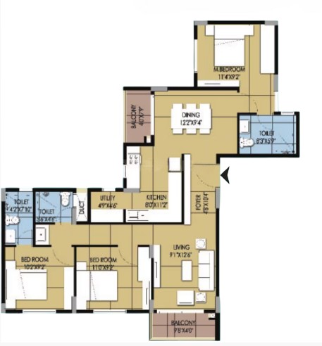 Provision for a chimney, water purifier, microwave/mixer grinder and refrigerator