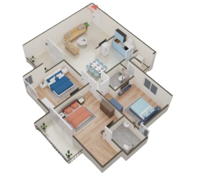 Main Door Frame: Hardwood frame with molded panel door shutter (with SS / Brass hardware)