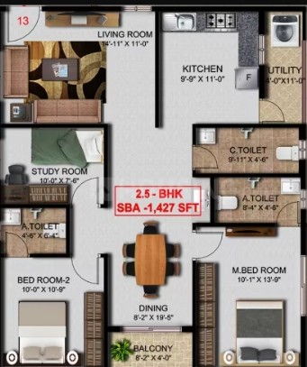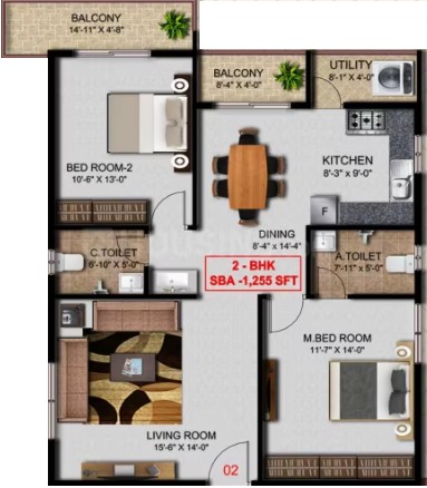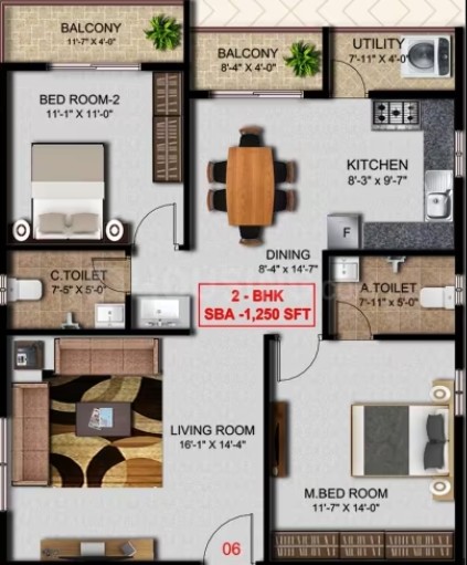 Vitrified tiles in entire flat and anti-skid ceramic tiles in balconies & toilet
