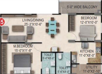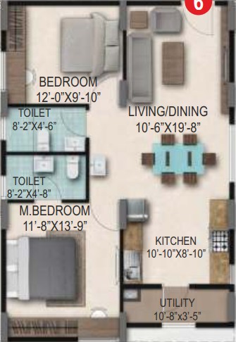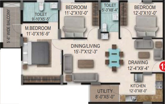 TOILETS, BALCONY & UTILITIES: Anti-skid ceramic tiles flooring of the standard brand