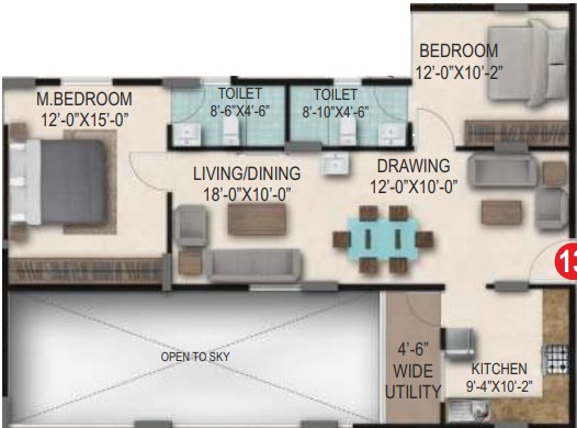 2. Power points for cooking range chimney, refrigerator, microwave ovens, mixer/grinders, water purifier, exhaust fan in kitchen, washing machine in Utility area. 4. Provision for geyser points in bathrooms.