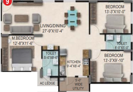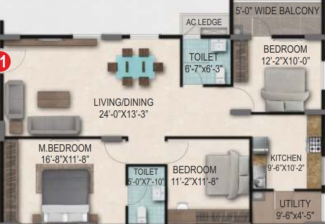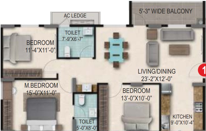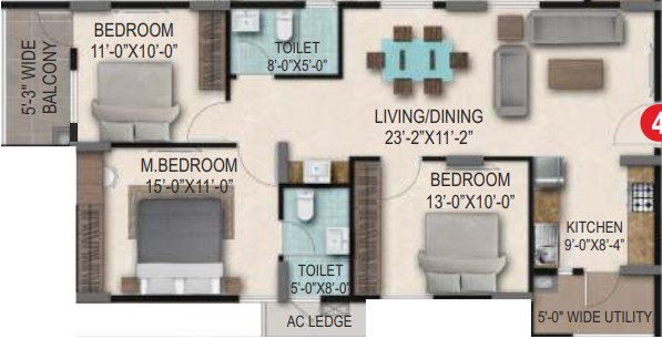 3. Provisions for internet point and AC point in hall and all bedrooms.