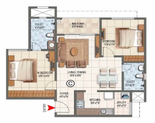 Unit sizes of the Sobha Valley View ranges from 1304 - 1817 Sq.Ft .