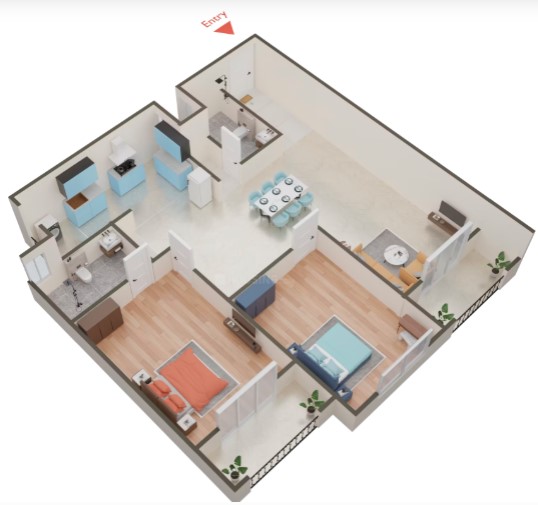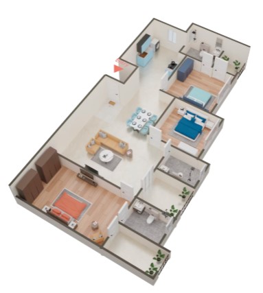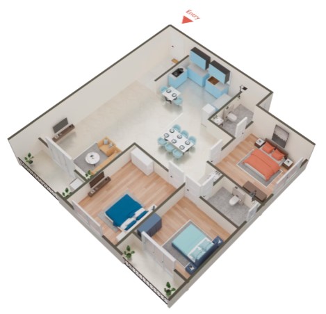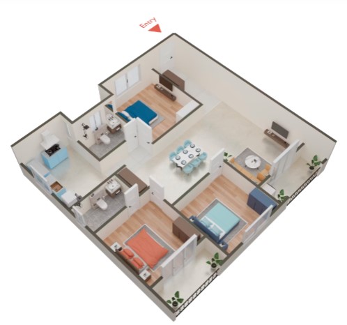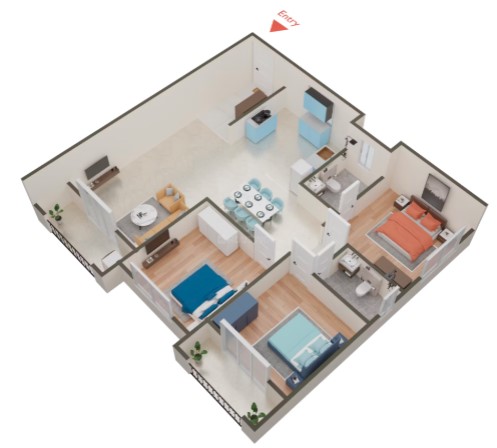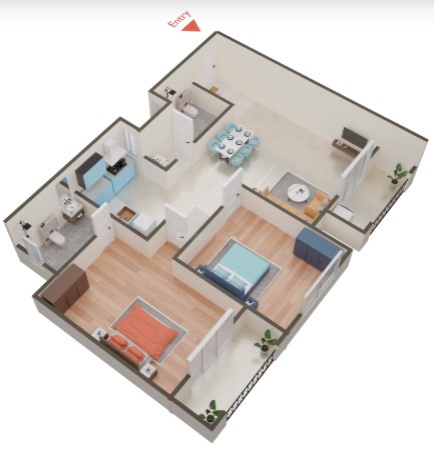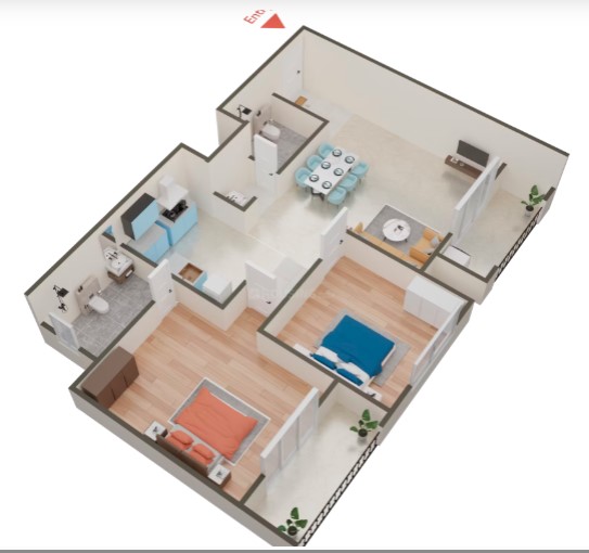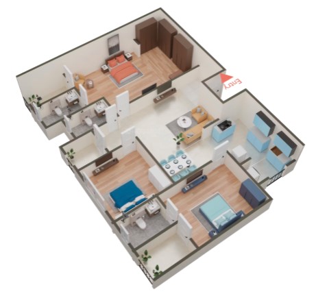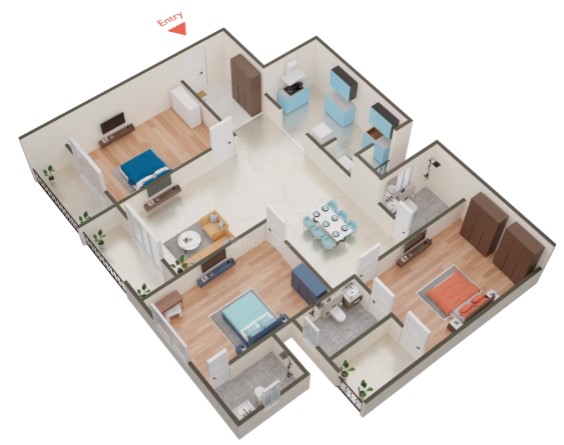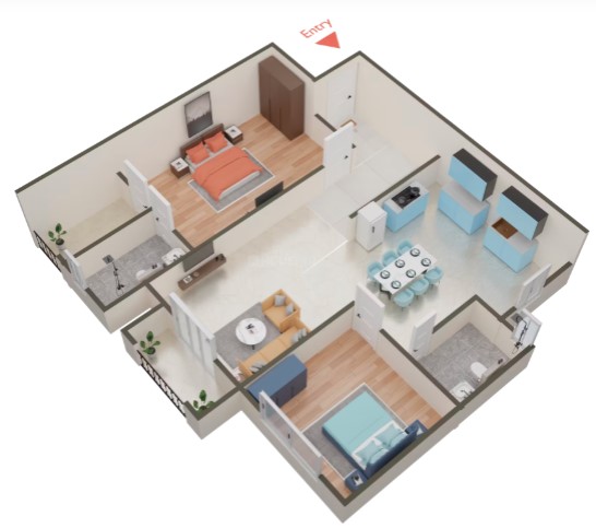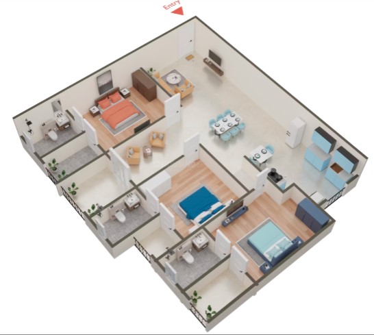 SOMANY/RAK or equivalent make vitrified tiles for living, dining, kitchen & all bedrooms
