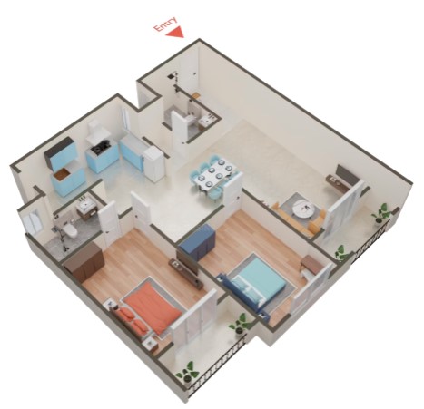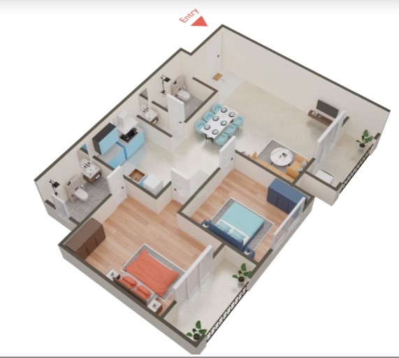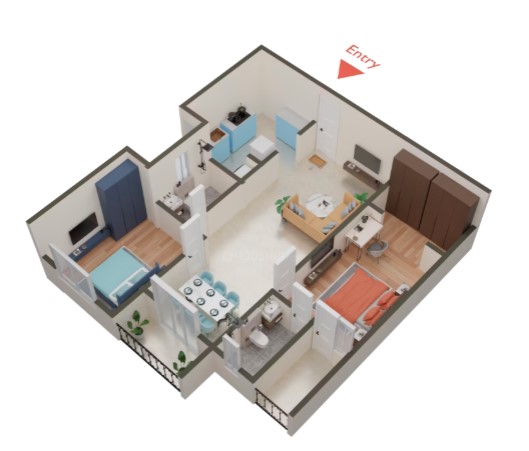 Main door: Super quality hardwood frame and shutters with melamine finish