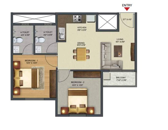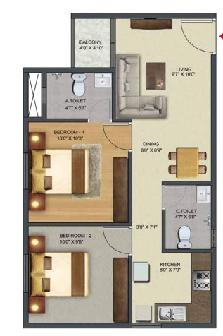Generator back up for Apartment through limiter switch (0.5KW) and for 1 BHK through limiter switch (0.2KW).