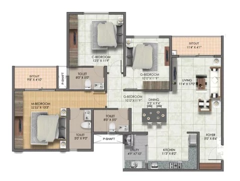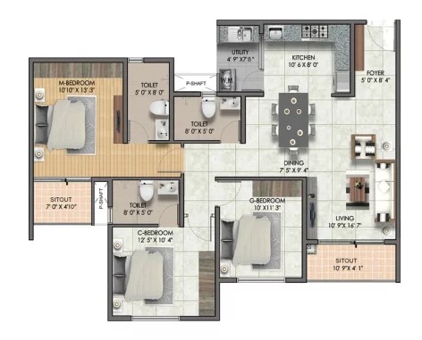 Power supply for 3.5BHK/3BHK – 4 KW and 2.5BHK/2BHK – 3KW.