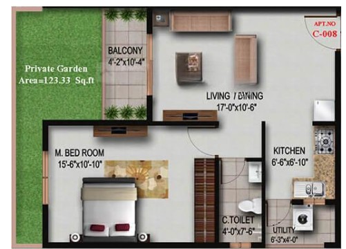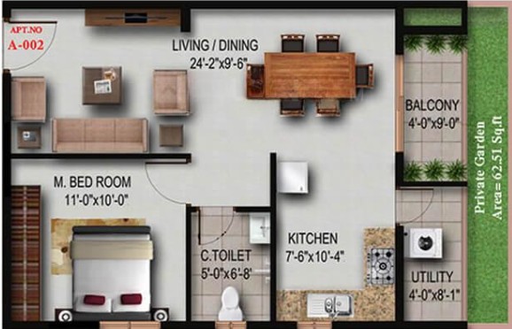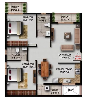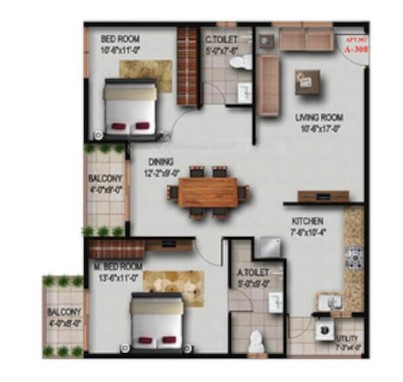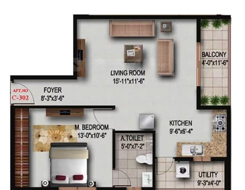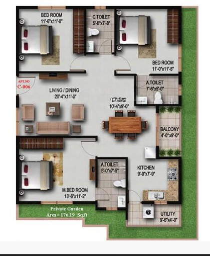 Vitrified tiles of well reputed brand for the living, dining, kitchen and bedrooms
