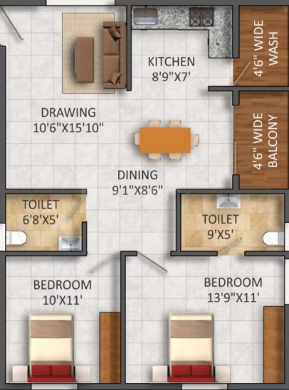 A highly popular surrounding known for its easy accessibility of fundamental commodities and other sources of entertainment, Margondanahalli, possesses this splendid structure. Launched with various amenities this flat brings in 2 and 3 BHK infused with the highest degree of convenience. SVS Developers has put forth a swimming pool along with a play area, open lawn, sports courts and a beautiful garden with seating. It claims a total of 135 units with each differing in size from 1044 sq ft to 1488 sq ft. The entire land of 1.5 acres is under 24-hours surveillance.