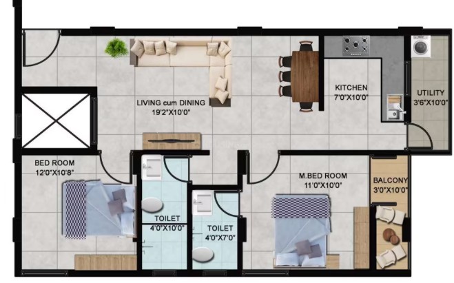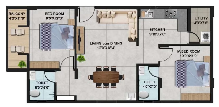 The Avaas is a stilt plus 4-story apartment featuring modern architecture. Developed by Nagarjuna corporation this is an elegant flat for sale in BTM Layout, which is a cherished residential area. All the flats here are configured as 2 BHK units and open out to beautiful balconies where families can make beautiful memories. The unit size of these flats ranges between 958 - 1014 Sq.Ft. In total, there are 24 apartment units in this gated community and they enjoy shared amenities like a gym and so on. Also, this is a fully secure gated community that comes equipped with a solid security system.