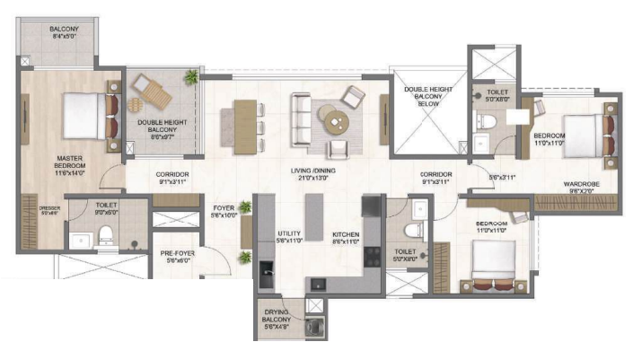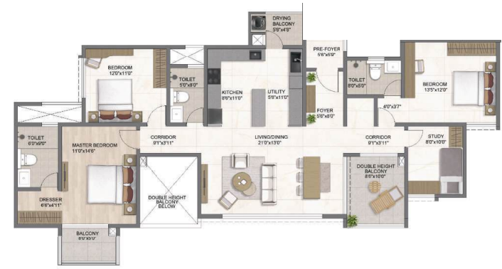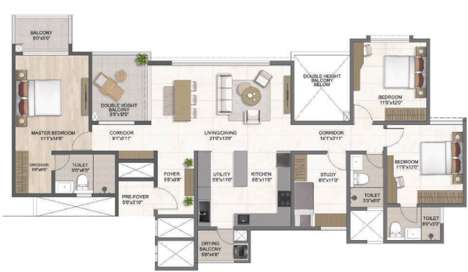 Unit sizes of the The Earthscape ranges from 1844 - 2278 Sq.Ft .