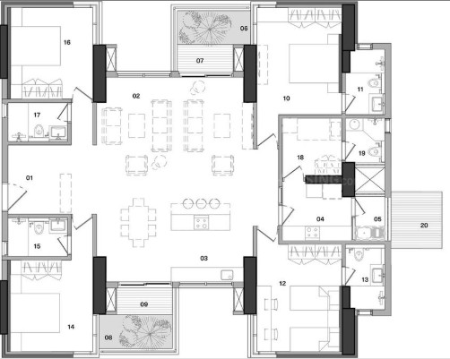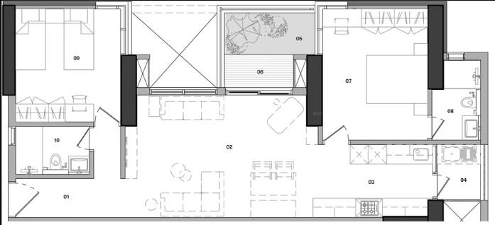 2 single beds; 1.5 module wardrobes (U10)/2 module wardrobes (U20).