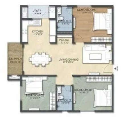 Suraksha Group has been developing the residential properties for 25+ years. 1200 + happy customers were there with them. In Hulimavu, they constructed an apartment named Tranquil Gardens. Hulimavu is the location which lies on Bannerghatta road and is connected to various places through BMTC buses. The flat consists of triple bedrooms which have units of 112. The size of the units would be 1457 sq.ft to 1973 sq.ft. The total land area would be 1.5 acres in number. This is the place where comfort, luxury and modernity are blended together.