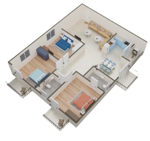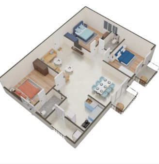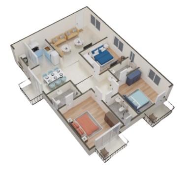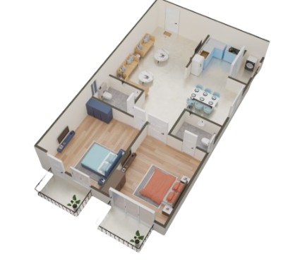 Vitrified tiles flooring, for living, dining and all bedrooms. Ceramic Tiles for balconies and kitchen. Anti-skid tiles in toilets