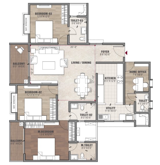 Vaswani Starlight is a meticulously crafted township developed by Vaswani Estates Developers. These towering high-rise apartments are for sale in Whitefield, which is the trending tech hub of Bangalore city. So these elegant apartments are a wonderful choice for those working in these IT offices. Both 3.5 & 4 BHK apartments are available here, and they boast spacious and luxurious carpet areas ranging between 1970 - 2730 Sq.Ft. Spread across a grand site of 4.22 acres, this gated community is planned with 70% open space, and in total, there are 269 apartment units planned with all modern amenities.