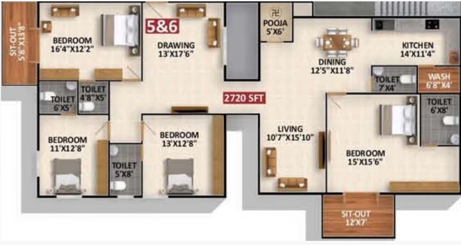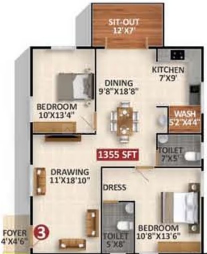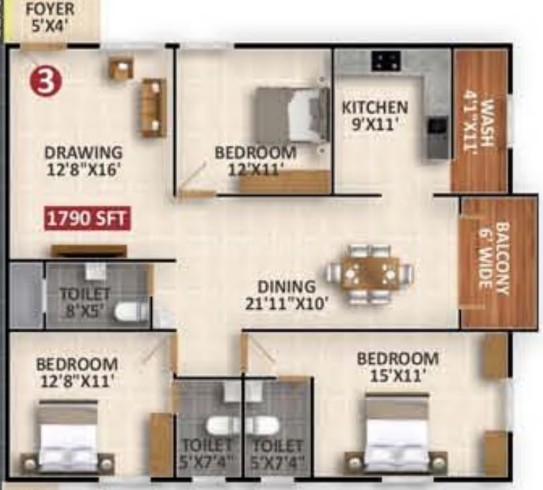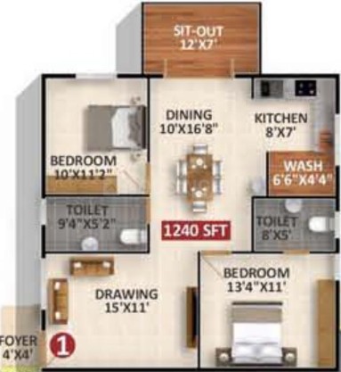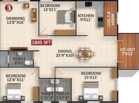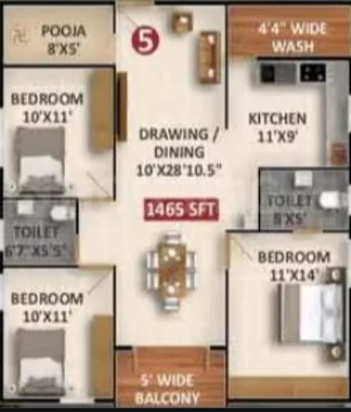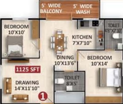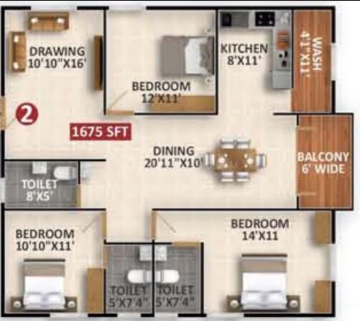 Provision for Washing Machine & Wet Area for Washing Utensils etc.