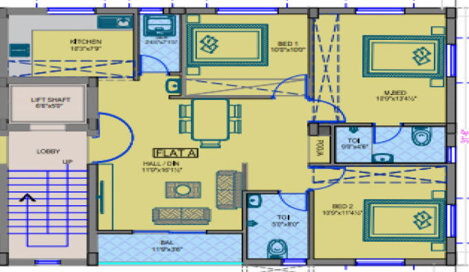 Unit sizes of the Aavaasa Srilakam ranges from 926 - 1251 Sq.Ft .